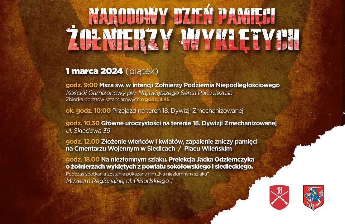 „Na niezłomnym szlaku”. Prelekcja Jacka Odziemczyka o żołnierzach wyklętych z powiatu sokołowskiego i siedleckiego. Podczas spotkania zostanie pokazany film „Na niezłomnym szlaku”. Muzeum Regionalne, ul. Piłsudskiego 1