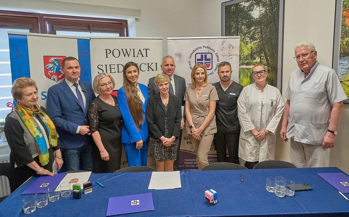 Uroczystość podpisania umowy zgromadziła przedstawicieli obu samorządów: Karola Tchórzewskiego – Starostę Siedleckiego, Małgorzatę Cepek – Wicestarostę Siedleckiego, Pelagię Piątek – Skarbnika Powiatu, Tomasza Hapunowicza – Prezydenta Miasta Siedlce oraz Kazimierza Paryłę – Skarbnika Miasta. Obecni byli również Angelika Ambroziewicz – Dyrektor SPZOZ w Siedlcach oraz dr Hanna Wilk-Manowiec – Zastępca Dyrektora ds. lecznictwa, Ordynator Oddziału Kardiologicznego.