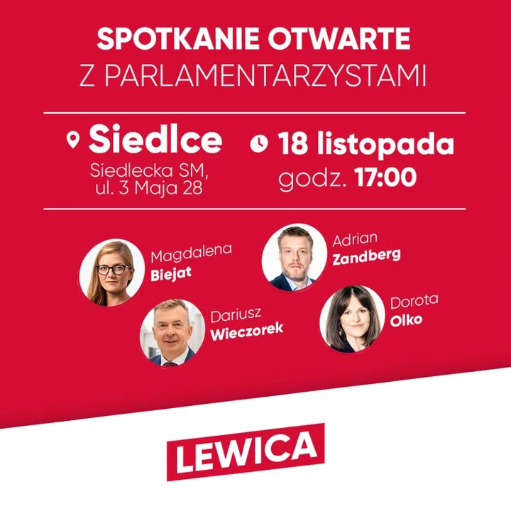 W spotkaniu wezmą udział posłowie: Magdalena Biejat, Dariusz Wieczorek i Adrian Zandberg oraz rzeczniczka prasowa partii Razem, siedlczanka, Dorota Olko.