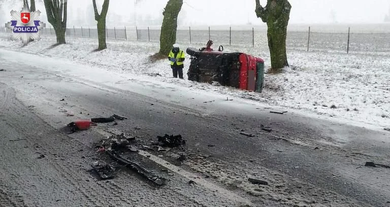 Drugi wypadek miał miejsce w Mościbrodach na DK63. 49-letni mężczyzna, kierujący VW, z nieznanych przyczyn zjechał na przeciwległy pas ruchu i na łuku drogi zderzył się z innym VW, kierowanym przez 36-letniego mężczyznę. Samochodem jechały dwie osoby dorosłe i dziecko. Cała trójka została przewieziona do szpitala. Kierowca doznał najpoważniejszych obrażeń.
