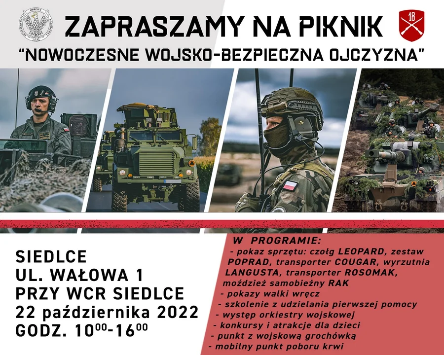 Wydarzenie rozpocznie się o 10:00 przy Wojskowym Centrum Rekrutacji w Siedlcach (ul. Wałowa 1) i potrwa do godz. 16:00.