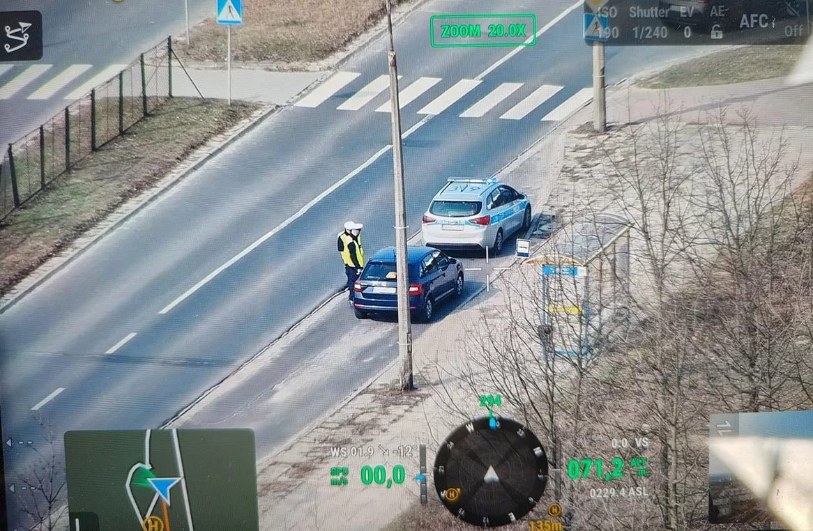 Policyjny dron zapewnił skuteczny monitoring rejonu przejść dla pieszych, rejestrując niebezpieczne manewry kierowców. Dzięki temu funkcjonariusze mogli natychmiast podejmować interwencje wobec osób naruszających przepisy.
