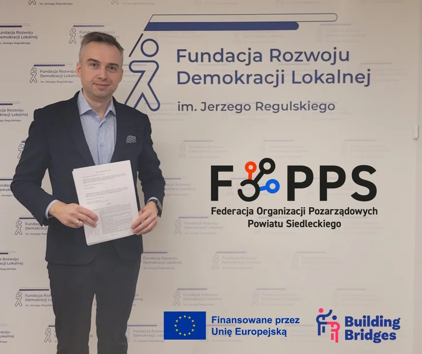 28 marca w siedzibie Fundacji Rozwoju Demokracji Lokalnej im. Jerzego Regulskiego pan Sławomir Stańczuk - Prezes Zarządu Federacji Organizacji Pozarządowych Powiatu Siedleckiego podpisał umowę na grant o wartości 85 950 zł na realizację zadania pod tytułem: "FOPPS wzmacnia zaangażowanie NGO w budowanie lokalnej demokracji". w ramach projektu Building Bridges – Civic Capital in Local Communities.
