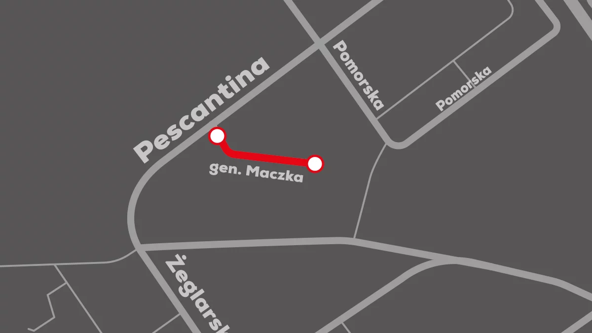 W trakcie realizacji robót ul. gen. Maczka zostanie całkowicie wyłączona z ruchu na odcinku od ul. Pescantina do 20 grudnia 2024 roku.