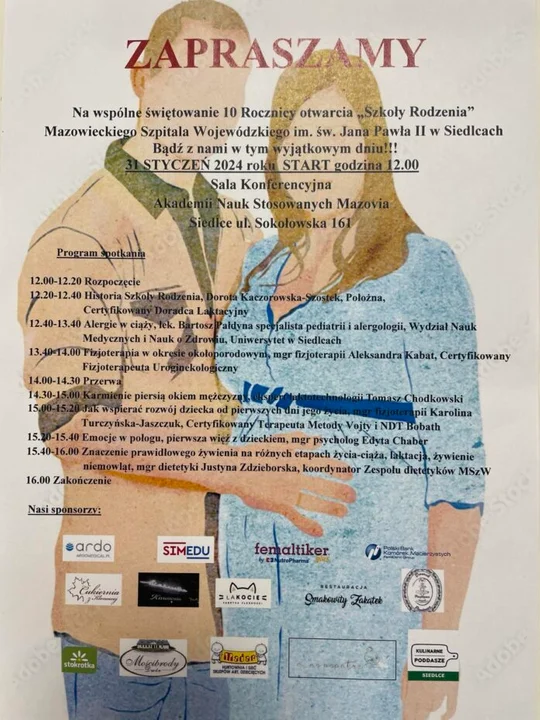 31 stycznia w samo południe odbędzie się wspólne świętowanie 10 rocznicy otwarcia "Szkoły Rodzenia" Mazowieckiego Szpitala Wojewódzkiego im. św. Jana Pawła II w Siedlcach.