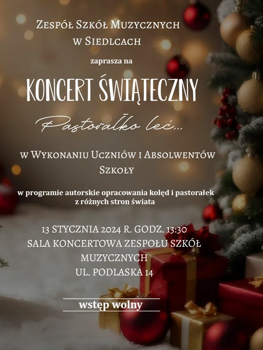 Koncert rozpocznie się 13 stycznia o 13:30 w sali koncertowej Zespołu Szkół Muzycznych przy ul. Podlaskiej 14.