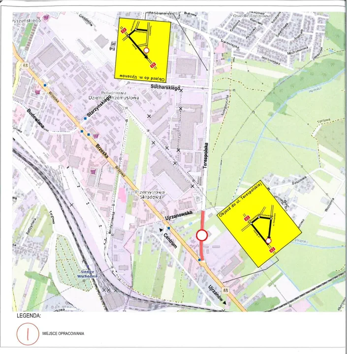 Ruch zostanie zamknięty na odcinku od skrzyżowania z drogą krajową nr 63 do skrzyżowania z ul. Ujrzanowską i ul. Baśniową. Ruch zostanie poprowadzony wyznaczonym objazdem ulicami Brzeską, Starzyńskiego i Sucharskiego.