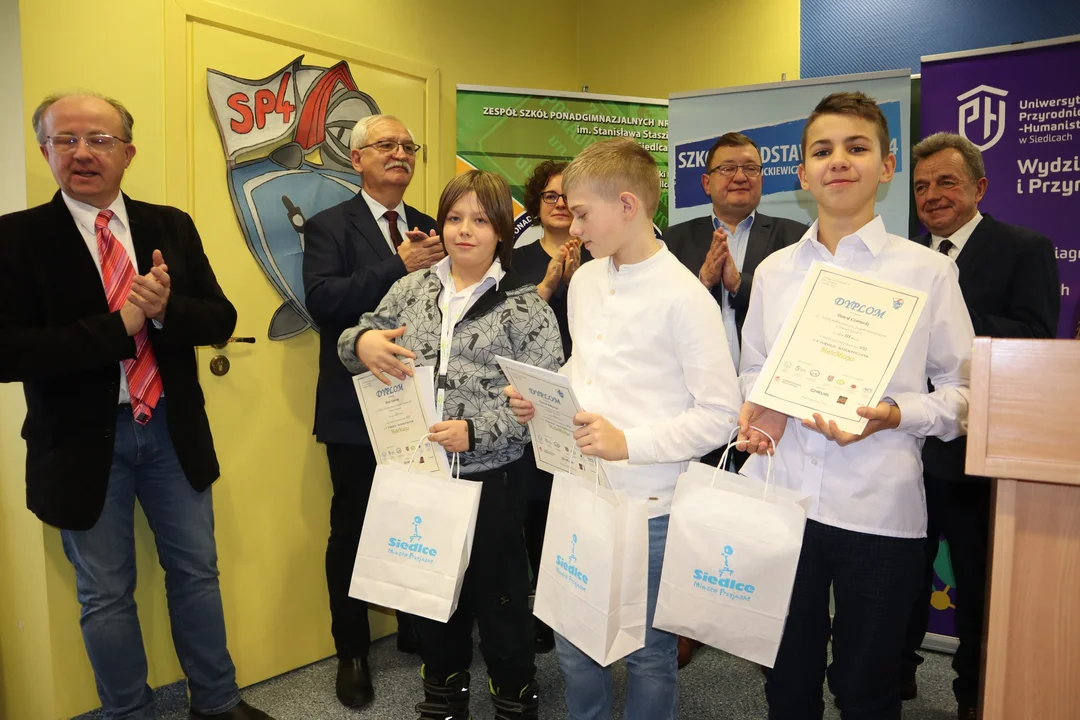 Statuetki, dyplomy, podziękowania oraz nagrody zostały wręczone przez rektora dr hab. Zbigniewa Karczmarzyka, profesora uczelni prorektora ds. nauki i współpracy z zagranicą, Dziekana Wydziału Nauk Ścisłych i Przyrodniczych dr hab. Cezarego Semprucha, Dyrektor Instytutu Matematyki dr hab. Agnieszkę Gil-Świderską, Roberta Szczepanika - zastępcę prezydenta Siedlec, Agnieszkę Mężyńską - starszego wizytatora Delegatury w Siedlcach Kuratorium Oświaty w Warszawie, mgr inż. Krzysztofa Grzegorczuka, dyrektora ZSP nr 3 oraz Annę Plutę, dyrektor SP 4 i doktora Siłuszyka.