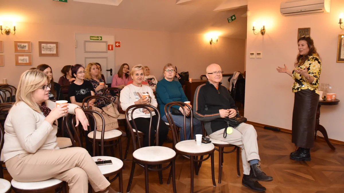 Prowadząca, Irmina Sołowiej, wprowadziła zebranych w tematykę aromaterapii, prezentując korzyści płynące z używania olejków eterycznych. W trakcie spotkania omówiono m.in. działanie olejku z dzikiej pomarańczy, który przez cały czas uwalniał przyjemny zapach z dyfuzora. Goście mogli także spróbować orzeźwiającej wody z kroplą olejku cytrynowego oraz pomarańczowego.