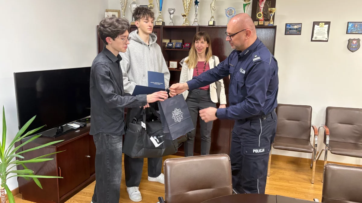 Dwóch uczniów z Siedlec zostało laureatami wojewódzkiego konkursu profilaktycznego promującego życie wolne od uzależnień i przemocy. 25 lutego 2026 roku p.o. Komendanta Miejskiego Policji w Siedlcach, podinsp. Mariusz Matusiak, wręczył młodym twórcom nagrody za zajęcie pierwszego i drugiego miejsca.