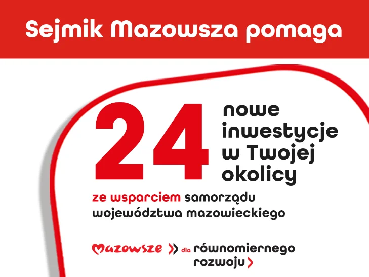W ramach programu „Mazowsze dla równomiernego rozwoju” zostaną dofinansowane kolejne 24 inwestycje, w tym: 6 projektów dotyczących modernizacji dróg gminnych, 3 projekty edukacyjne, 15 projektów dotyczących m.in. infrastruktury sportowej, zdrowotnej, społecznej czy kanalizacyjno-wodociągowej.
