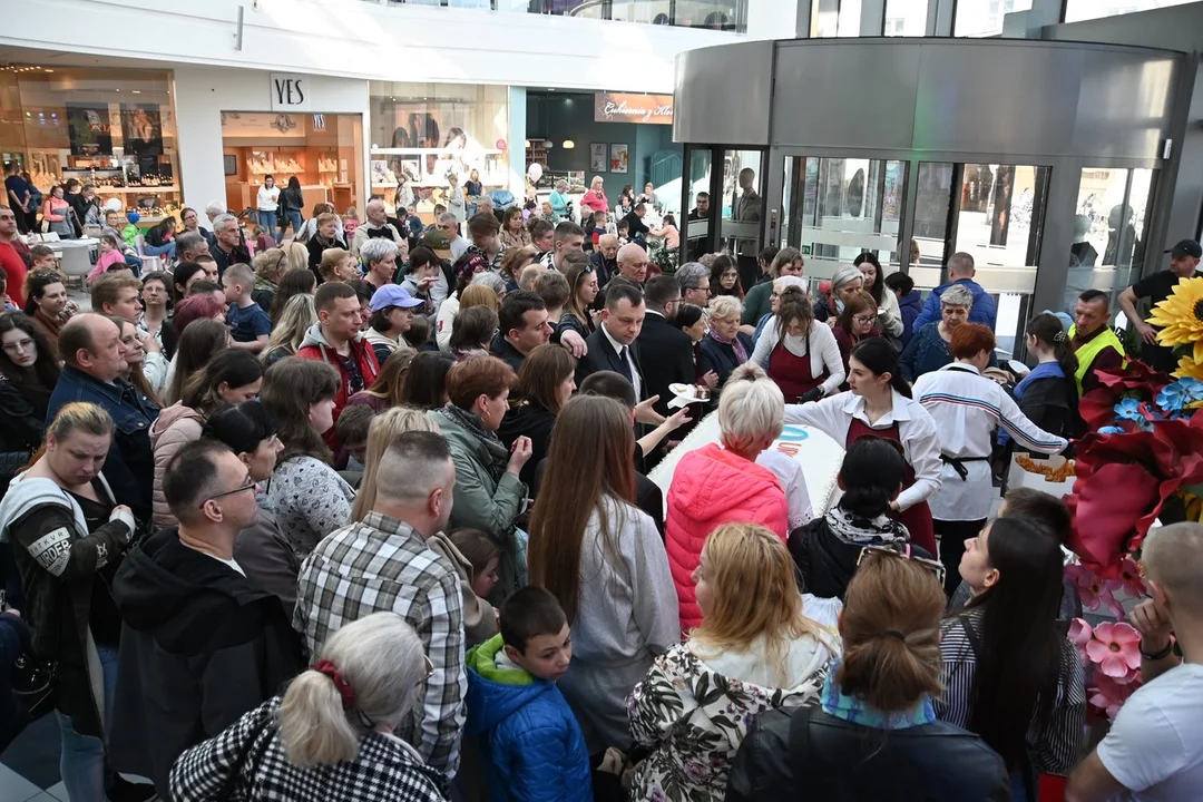 Punktualnie o 15:00 rozpoczął się pokaz mody. Wyjątkowy, bo w trakcie niego zaprezentowane zostały trendy i modne dodatki ze sklepów działających w Galerii. Punktem kulminacyjnym był tort, który przygotowany z myślą o tysiącu osób. Ważył on aż 100 kilogramów.