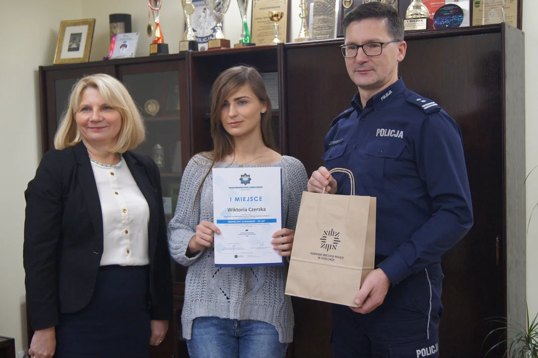 Laureatka pierwszego miejsca spotkała się z mł. insp. Andrzejem Dziewulskim w siedleckiej komendzie policji. Wiktorii Czerskiej towarzyszyła Dyrektor Zespołu Szkół Ponadgimnazjalnych nr 2 w Siedlcach Jolanta Duk. Komendant siedleckiej jednostki w imieniu Komendanta Wojewódzkiego Policji wręczył zwyciężczyni konkursu okolicznościowy dyplom oraz bon podarunkowy.