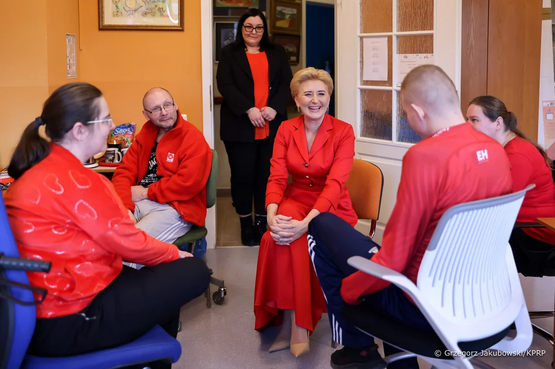 Agata Kornhauser-Duda wzięła udział w zajęciach nawiązujących do Walentynek, a podczas pracy rozmawiano o pasjach podopiecznych WTZ, ich talentach i mocnych stronach. Małżonka Prezydenta wyraziła radość, że siedlecka placówka wychodzi naprzeciw wymaganiom osób niepełnosprawnych, a zajęcia dostosowane są do realnych możliwości i potrzeb każdego uczestnika.