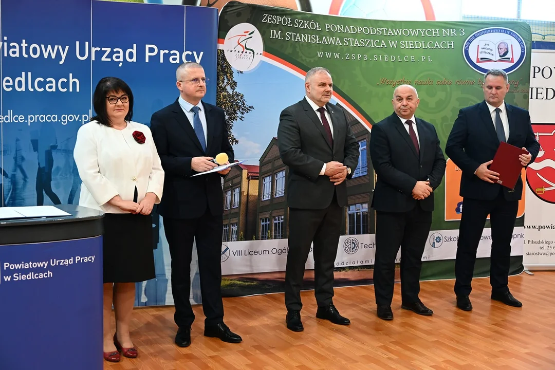 W ceremonii otwarcia Siedleckich Targów Pracy wzięli udział m.in. wiceprezydent Siedlec Dariusz Stopa, Przewodniczący Rady Miasta Robert Chojecki, wójt Gminy Siedlce Henryk Brodowski oraz przedstawiciele lokalnych samorządów.